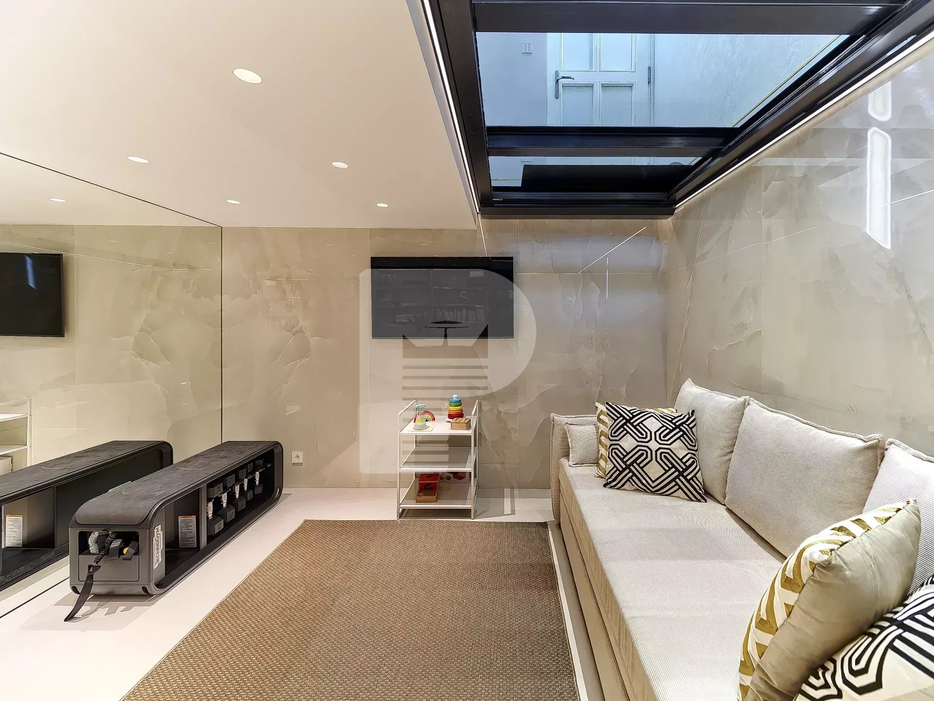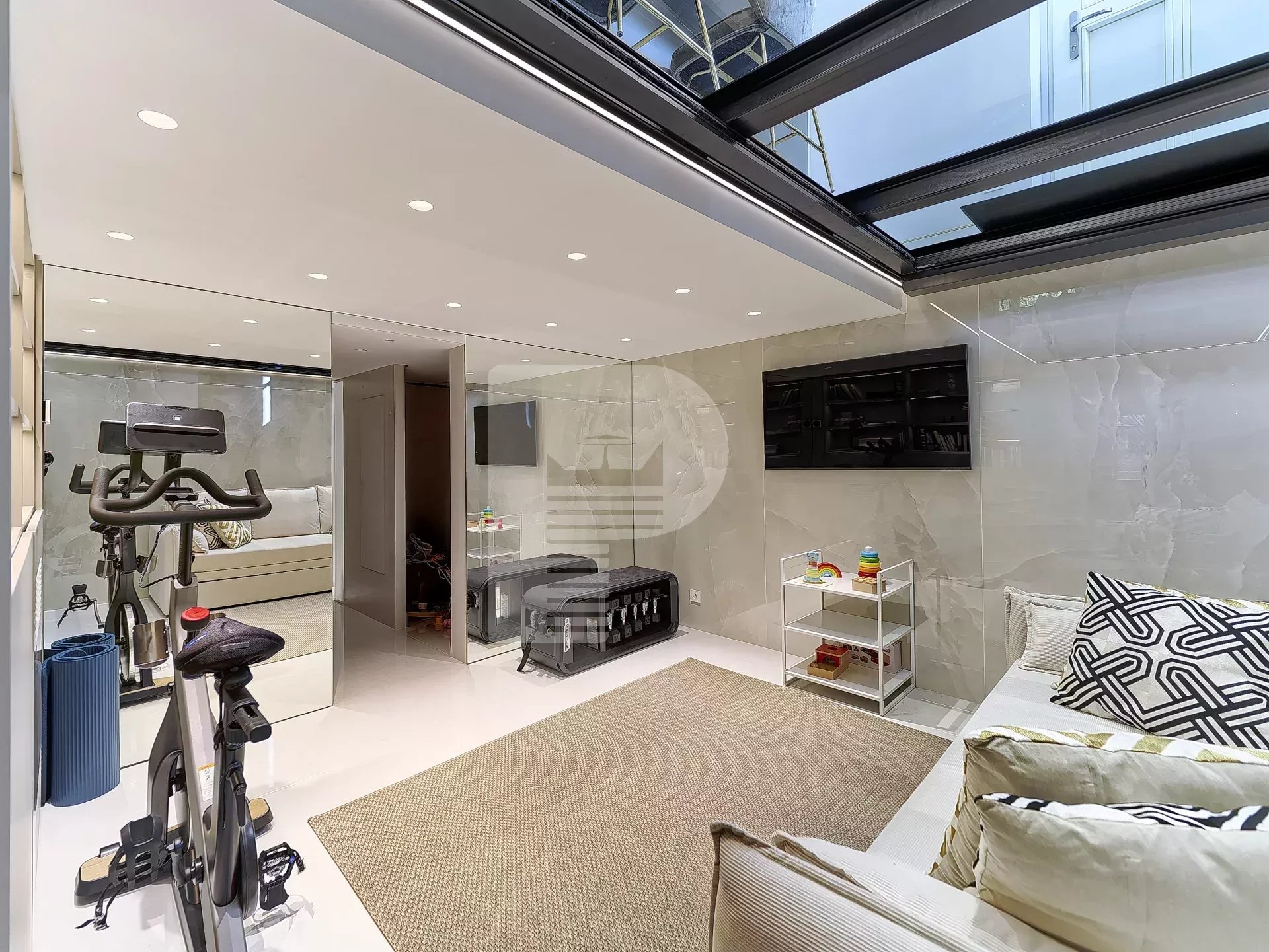 Cette maison de ville unique, située à Saint-Jean-Cap-Ferrat, offre un espace de vie sophistiqué de 125 m2, sur 4 niveaux. Elle dispose d'une entrée donnant sur un vaste séjour avec cuisine ouverte, et accés terrasse. Au niveau inférieur, se trouve une pièce polyvalente pouvant servir de chambre de service, salle de sport ou de jeu, avec sauna, salle de douches et WC. Aux étages supérieurs, se trouve une chambre de mître avec salle de bains et WC, dressing, balcon, et au plus haut une autre chambre avec sallede soiches et WC.